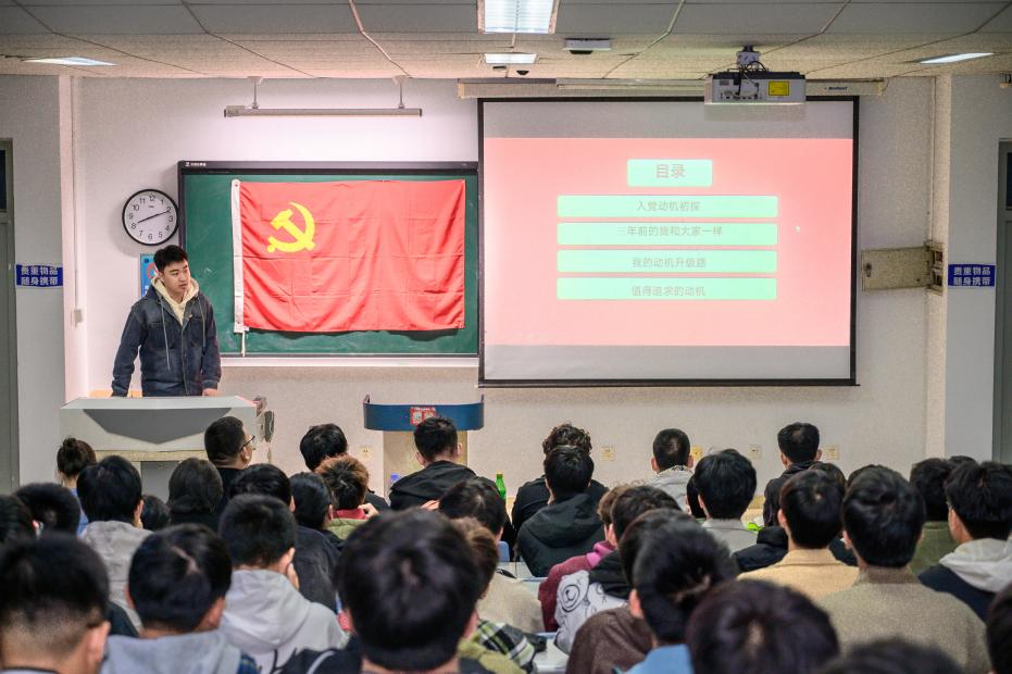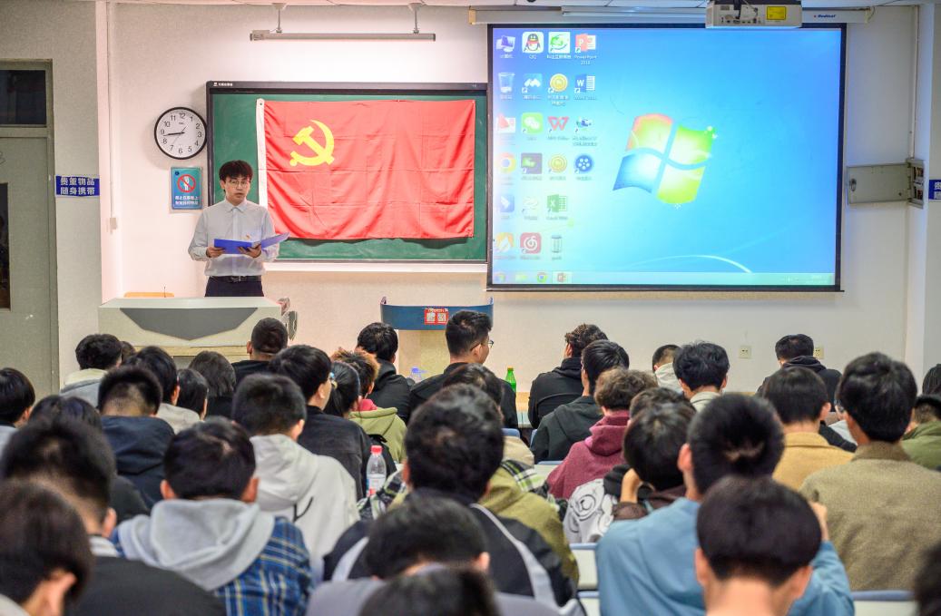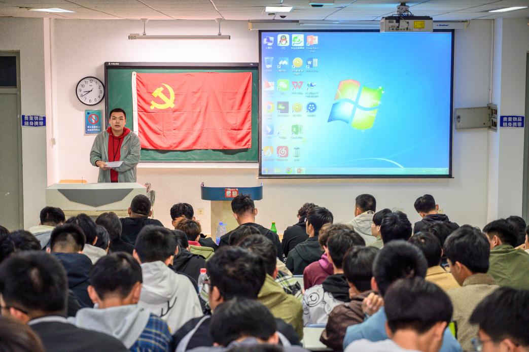 郑传龙同志讲解入党流程。他按照时间线清晰梳理了从申请入党到预备党员转正的完整流程。每个环节都有明确的时间与程序要求,新生需严格遵守流程规范,同时要在学业上争先、服务同学、严守纪律,以实际行动体现入党决心。