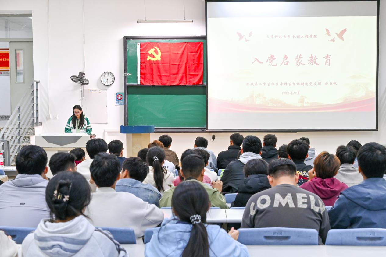 为深入贯彻落实新时代党的建设总要求,切实加强对大学生的思想政治引领,10月16日晚,机械第二学生社区本科生智能制造党支部在9-7阶梯教室成功举办了“点亮信仰灯塔,规划精彩人生”主题入党启蒙教育暨职业规划活动。本次活动旨在引导低年级学生端正入党动机、激发政治热情,同时帮助中高年级学生明确未来发展方向、科学制定职业生涯规划。