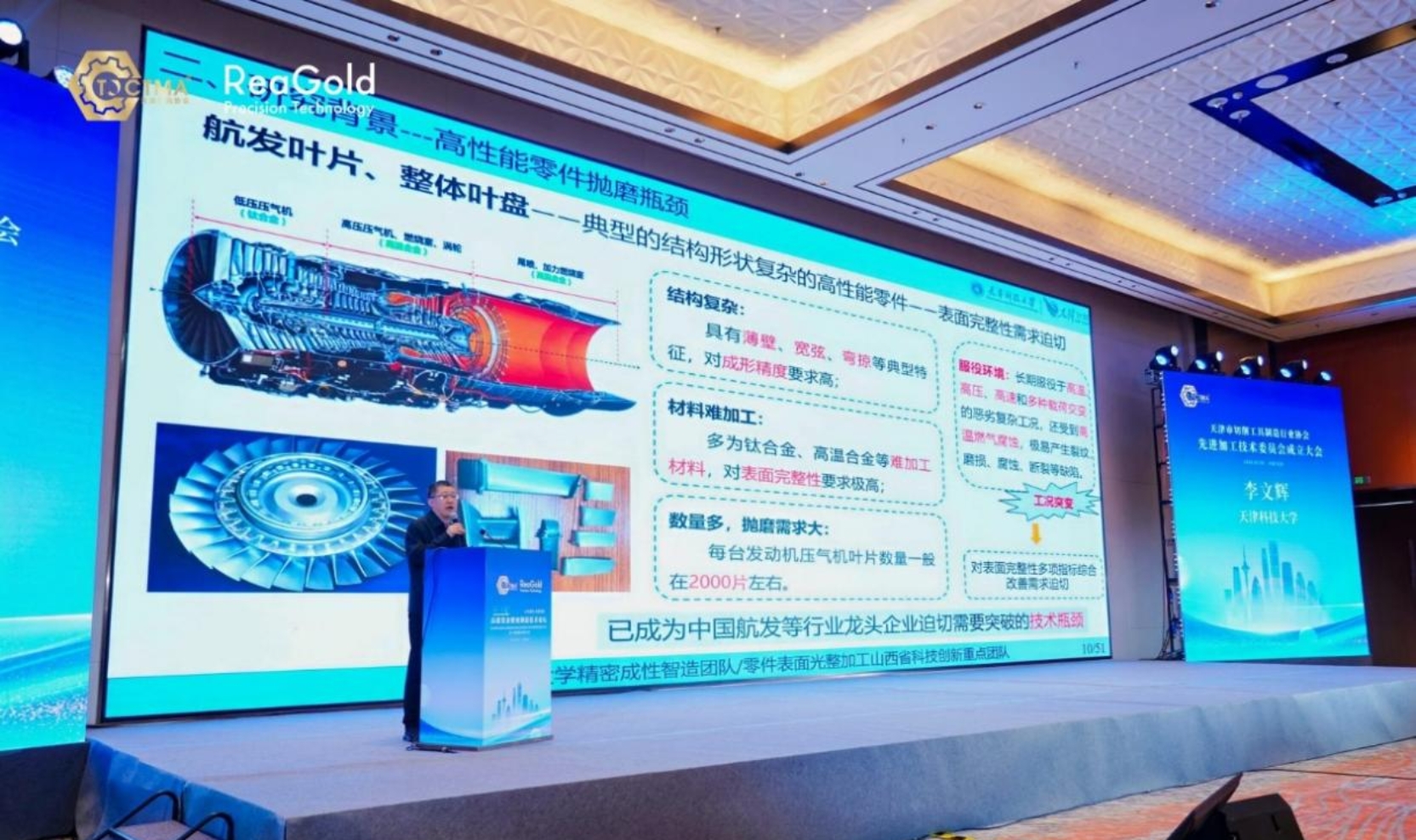 大会首先举行天津市切削工具制造行业协会先进加工技术委员会成立仪式。随后,在高端学术报告环节,李文辉教授应邀作题为《航空发动机复杂构件主动激振抛磨工艺研发与应用实践》的学术报告。报告针对航空发动机关键零部件表面光整加工的技术瓶颈,系统阐述了主动激振抛磨工艺的创新思路、研发路径与工程应用实践,为破解高端制造“卡脖子”难题提供了具有可操作性的技术方案,受到与会专家的广泛关注与好评。