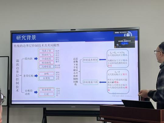 天津大学范子椰博士围绕“复杂流场中的主动与被动流动控制策略”展开报告,系统介绍了其在流体力学领域的创新成果,展示了流动控制在国防装备中的应用潜力。