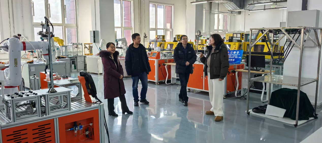 2026年1月23日,天津理工大学机械工程学院陈炜教授、张晓涛老师及体育教学部教工第一党支部书记李红艳教授一行三人莅临天津科技大学机械工程学院走访调研。教育部机械电子工程专业虚拟教研室优秀基层教学组织的负责人陈炜教授带队,围绕虚拟教研室建设、智能制造产教融合及实验教学改革等议题开展深度交流。机械工程学院智能制造产业学院主任房德磊、创新创业中心主任兼机械实践教学党支部书记周婧全程陪同参观并主持座谈。