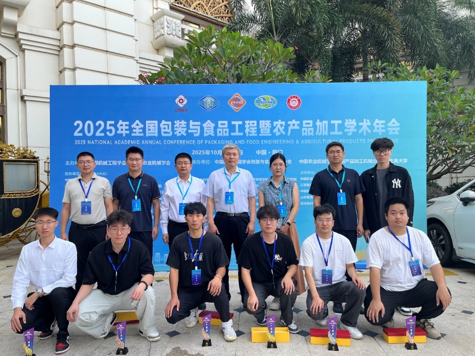 10月17日至19日,2025年全国包装与食品工程暨农产品加工学术年会与“中包杯”2025年中国大学生包装与食品工程创新创意大赛全国总决赛在福建厦门举行。会议由中国机械工程学会、中国农业机械学会联合主办,同期举办的“中包杯”大赛总决赛由中国机械工程学会主办、天津科技大学协办。来自全国包装与食品工程领域的专家学者和师生代表参加了会议,机械工程学院10名师生在中国机械工程学会包装与食品工程分会副主任委员徐庆教授、中国农业机械学会农副产品加工机械分会副秘书长郑兆启副教授带领下参会。